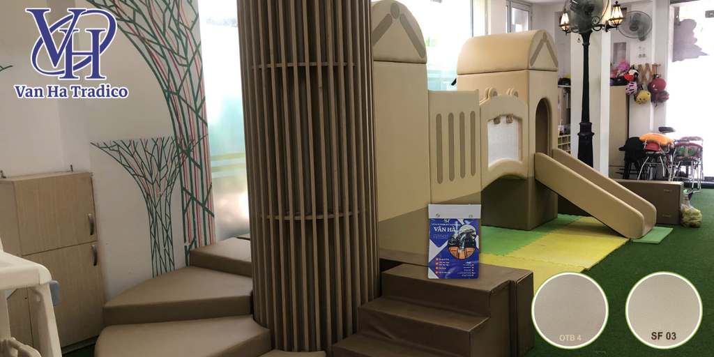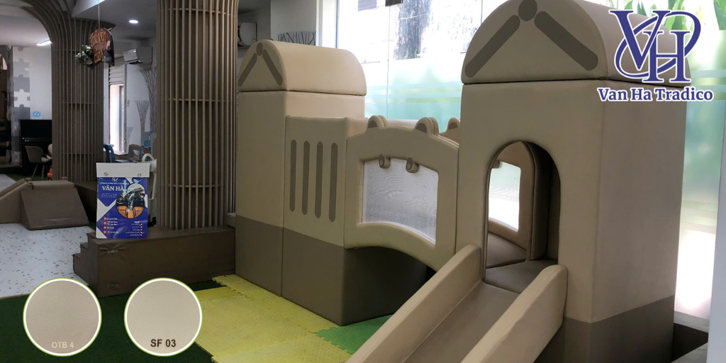 👉 Vừa qua, xưởng thiết kế đã lựa chọn 2 mã da sofa SF03 & OTB4 của Vân Hà Tradico để phối hợp trong dự án cầu trượt cho trẻ em vui chơi trong nhà.