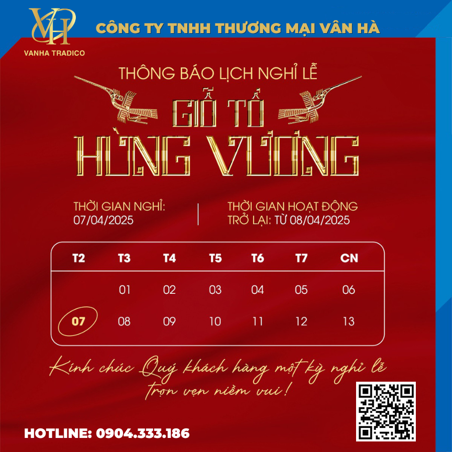 ⚡ Công ty Thương Mại Vân Hà xin trân trọng thông báo tới toàn thể Nhân viên cùng Quý khách hàng lịch nghỉ Lễ "Giỗ Tổ Hùng Vương" năm 2025 như sau: